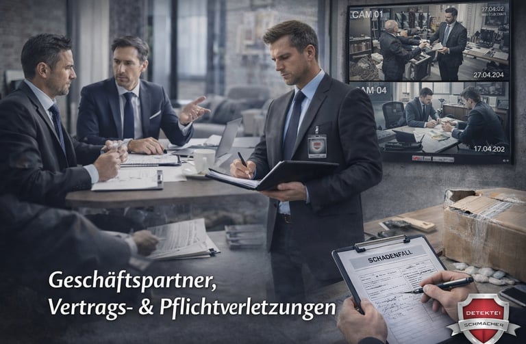 Die Detektei Schmacher unterstützt Unternehmen bei der diskreten und rechtssicheren Klärung von Vertrags- und Pflichtverletzungen – mit nachvollziehbarer Dokumentation als Grundlage für fundierte Entscheidungen.